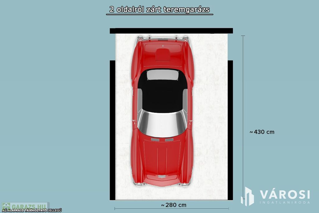 - Parkolóhely mérete kifejezetten széles (2,8 x 4,3 m), ami közepes méretű autóig megfelelő