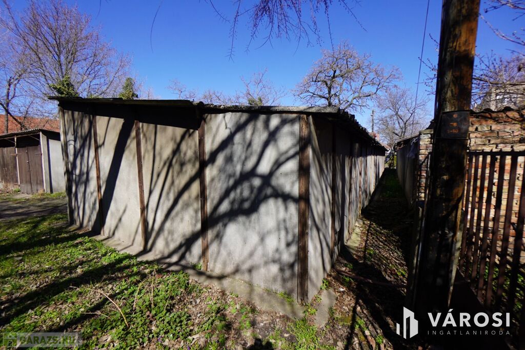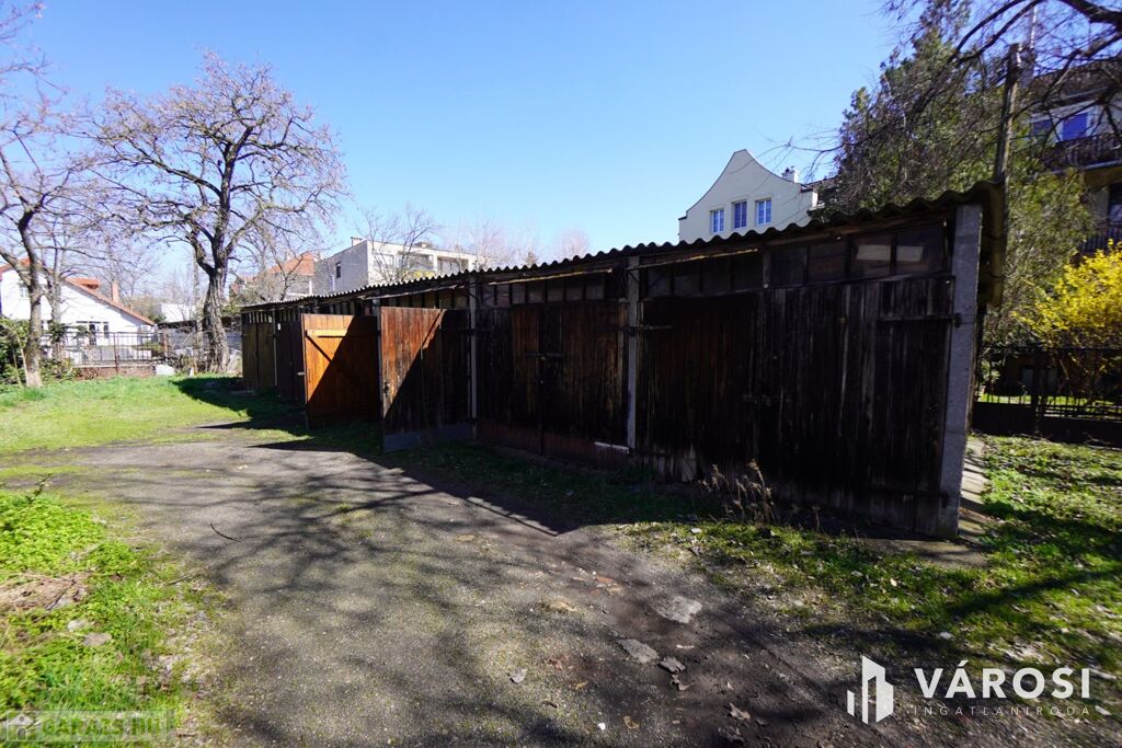 A garázs együtt épült a mellette helyet foglaló többi garázzsal önkormányzati területen. A telek bejárati kapuja zárható!