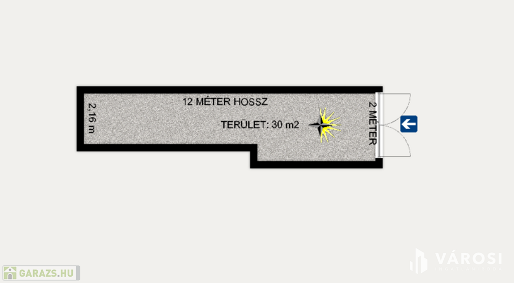 A garázsban áram áll rendelkezésre. A fa kétszárnyú garázsajtó 2 méter széles. A garázsba 2 autó egymás mögött elfér, de a helységet legcélszerűbb raktárnak használni. A tulajdonos is raktárnak szeretné kiadni.