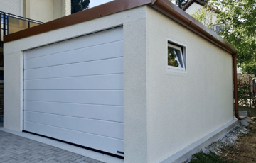 - garázskapu: Hörmann szekcionált, szigetelt kapu, motorral, távirányítóval, fehér színben (kérhető még: ezüst, antracit, aranytölgy, mahagón, dió színekben),